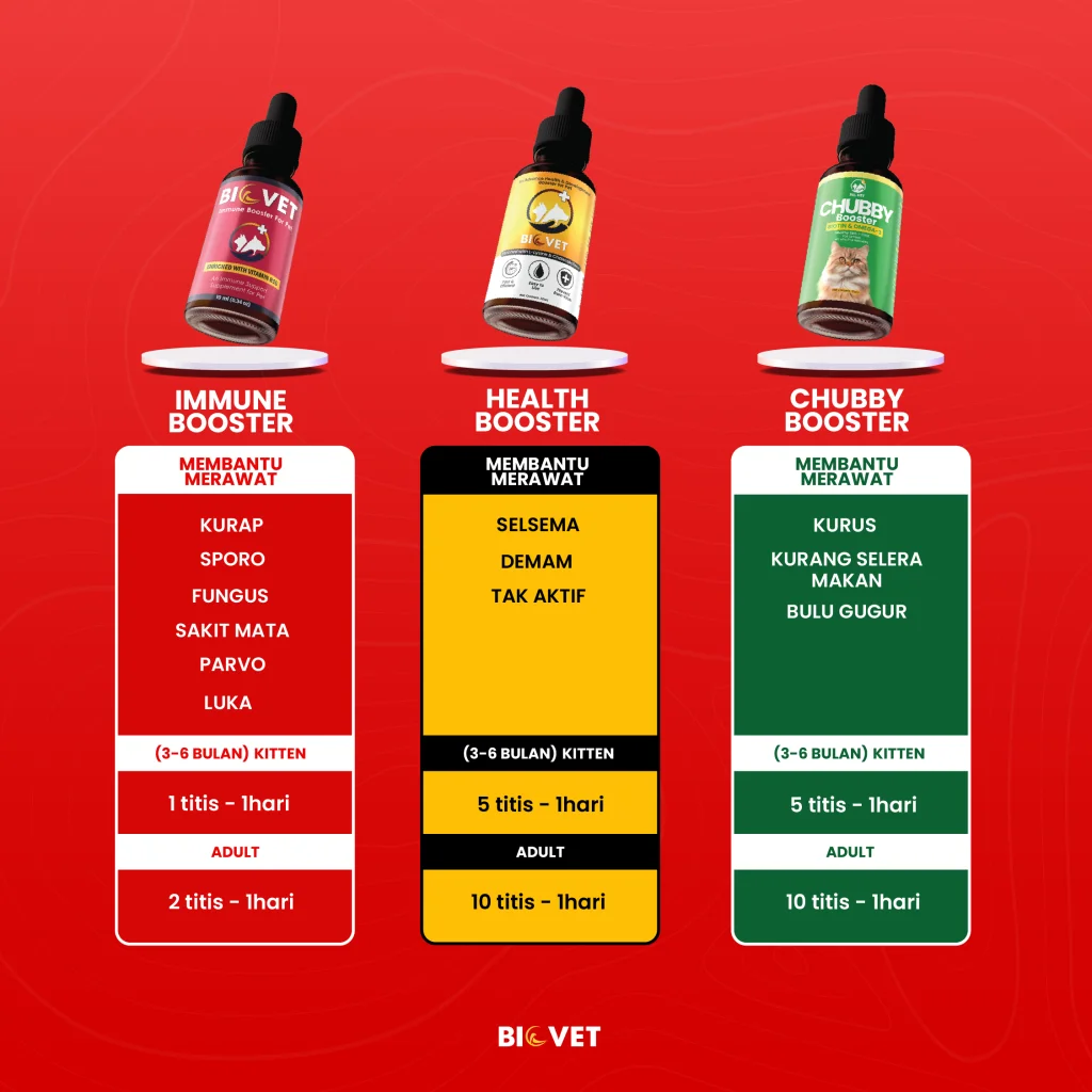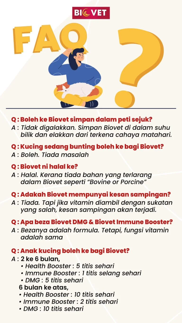 Vitamin Biovet khas untuk membaik pulih kesihatan kucing.
