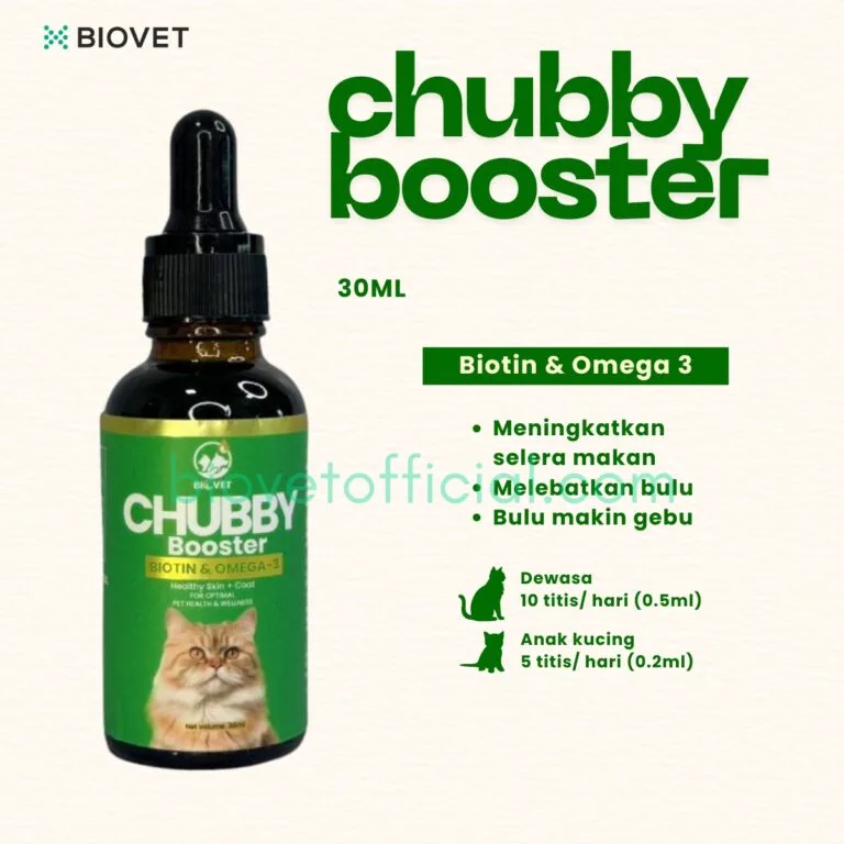 Chubby Booster (Omega 3 & Biotin) dirumus untuk picky eater, naikkan selera makan, bantu bulu gugur & kuatkan bulu serta beri kesan seawal 12 jam